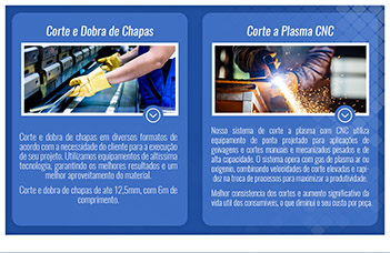 Corte e dobra de chapas de até 12,5mm, com 6m de comprimento.